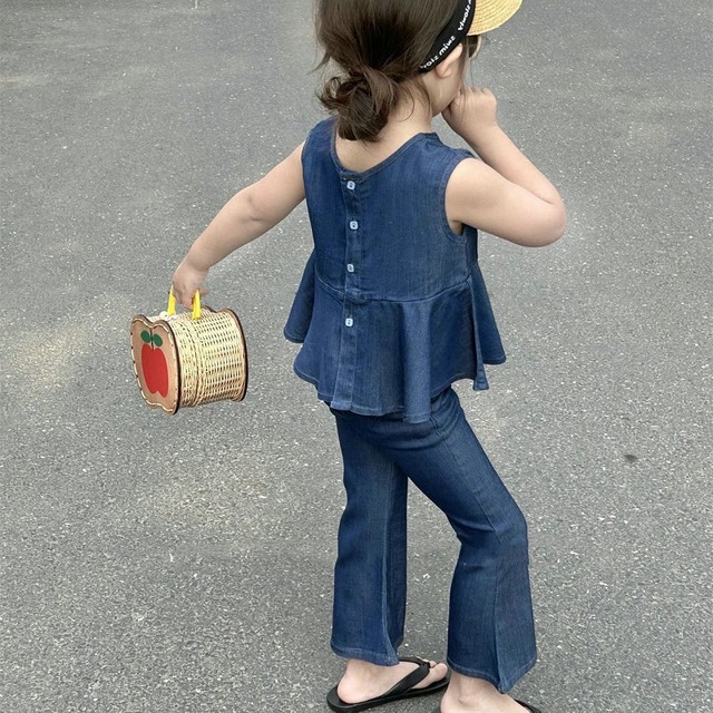 女の子 韓国版 カウボーイ 糸 ワンピース+チョッキ 2点 セット 子供服