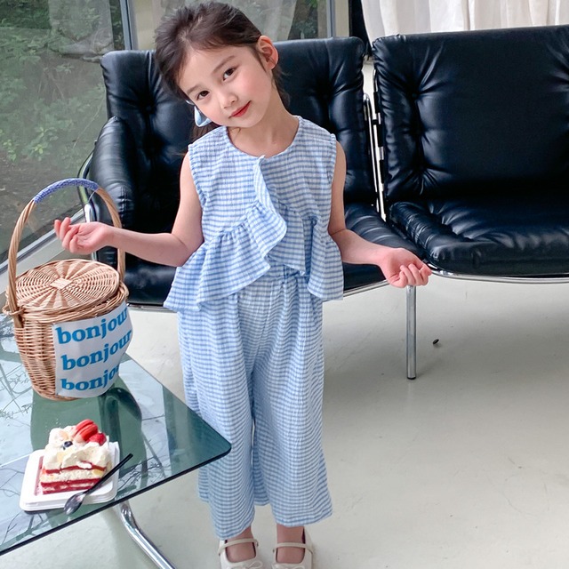 韓国風 子供服 リボンベスト + ティアードスカート セット 90-140cm