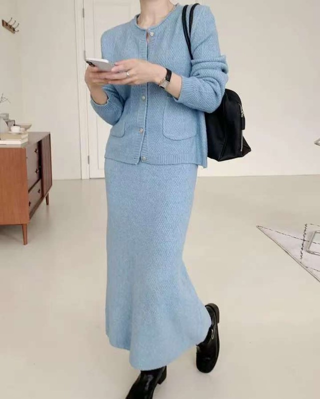 ニット セーター +ハイウエスト ニットスカート ドレス セット