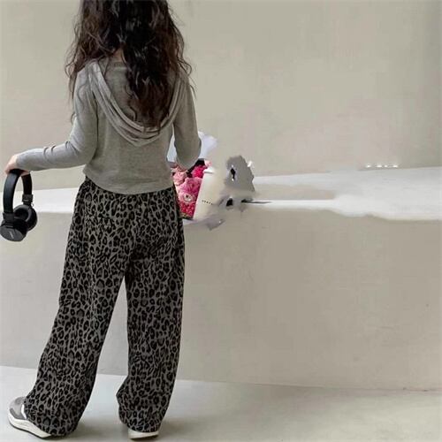 シャツ 韓国子供服 キッズ服 男女 トップス ジッパーシャツ+ヒョウ柄長ズボン