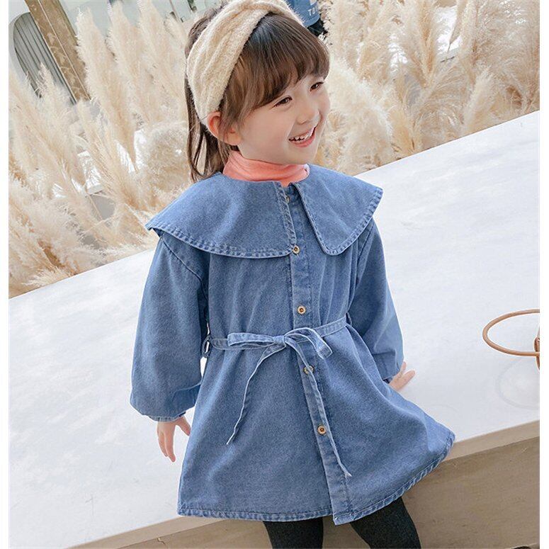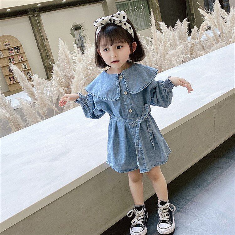 子供服 ワンピース キッズ 女の子 長袖 デニムワンピース 折り襟