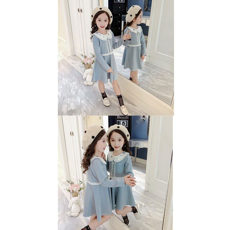 韓国子供服 女の子 子供服 長袖 花 レース襟 ドレス キッズ 上品 ワンピース