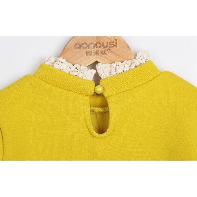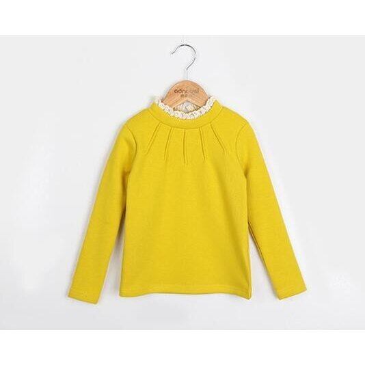 キッズ 長袖 トップス 子ども フリルネック Tシャツ 女の子 子供服 無地 裏起毛