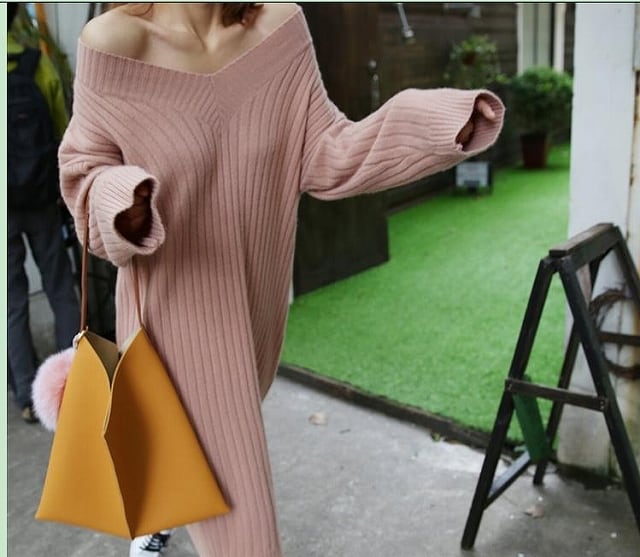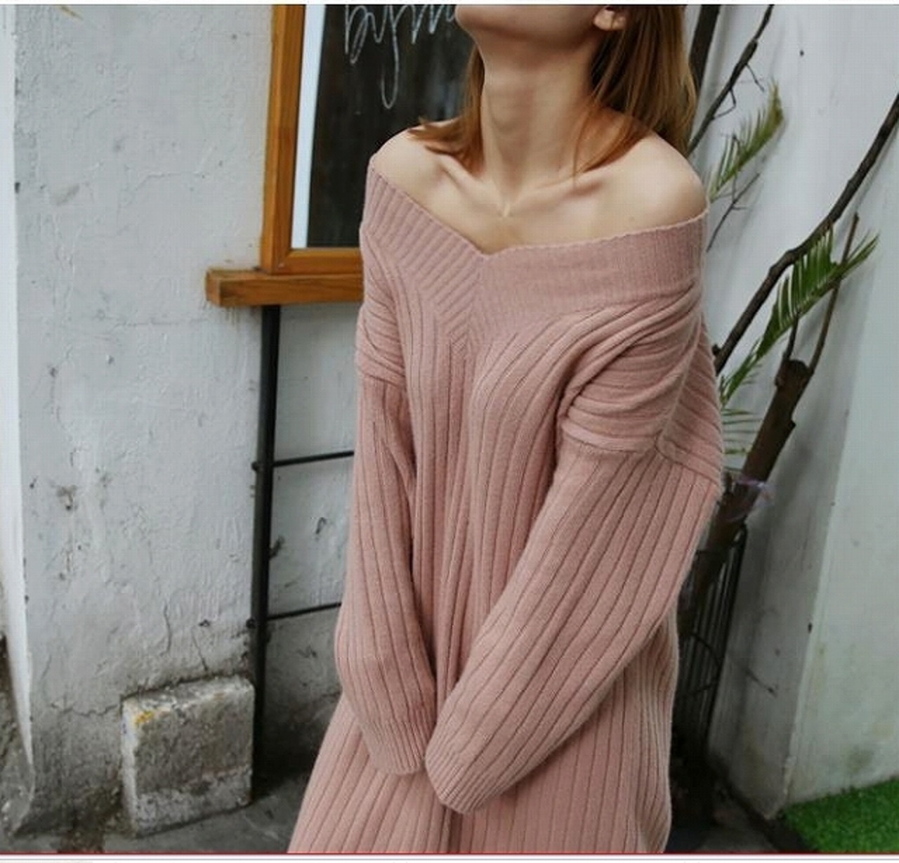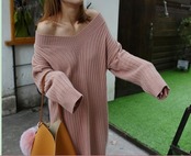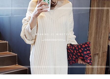 無地セーター○ホワイト/ピンク