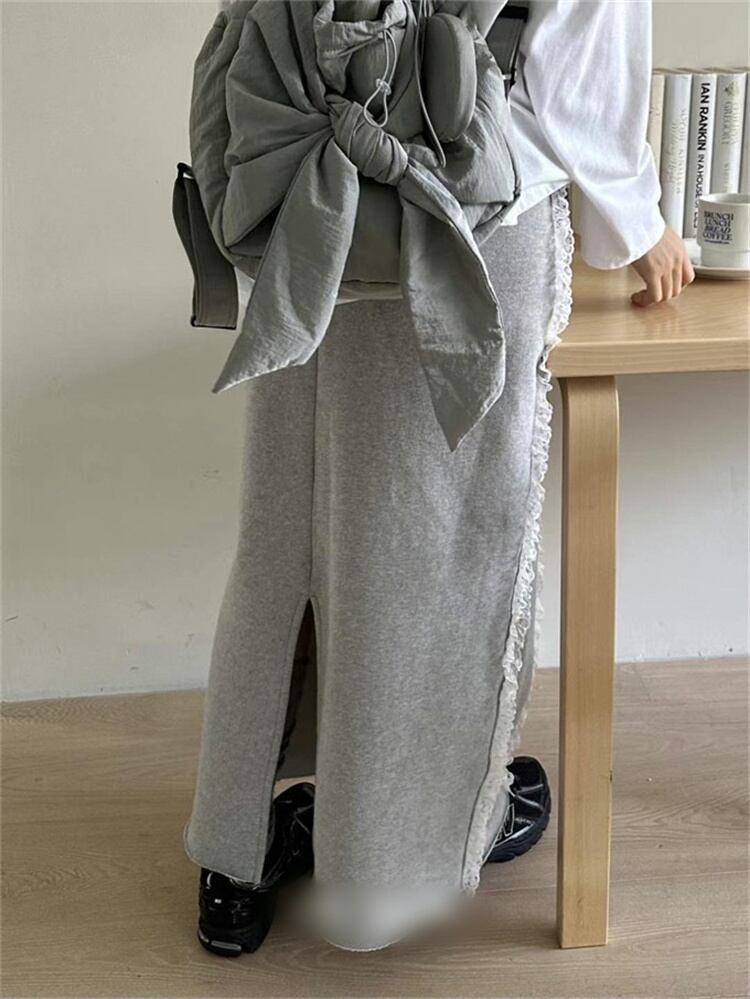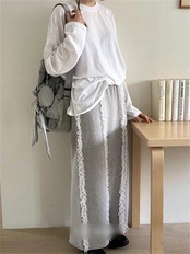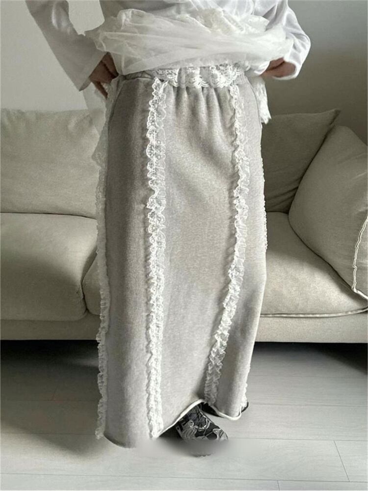 ミディアムスカート 薄手 レースハーフスカート かわいい ロングスカート