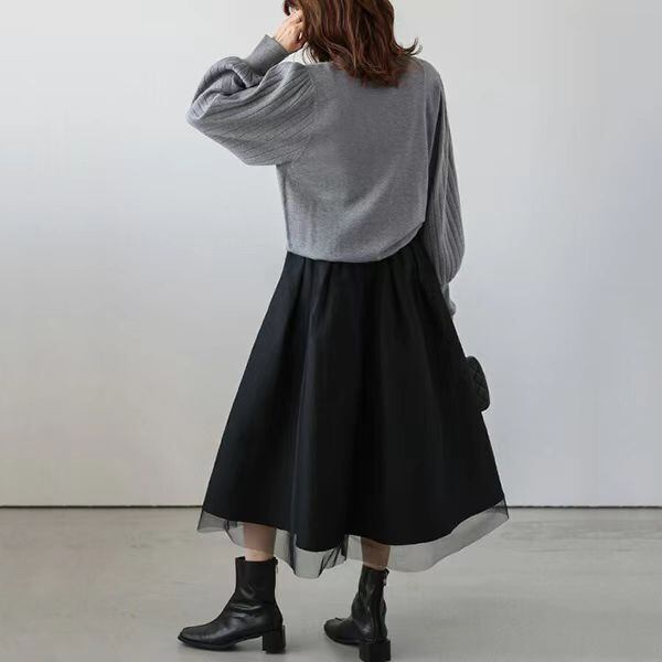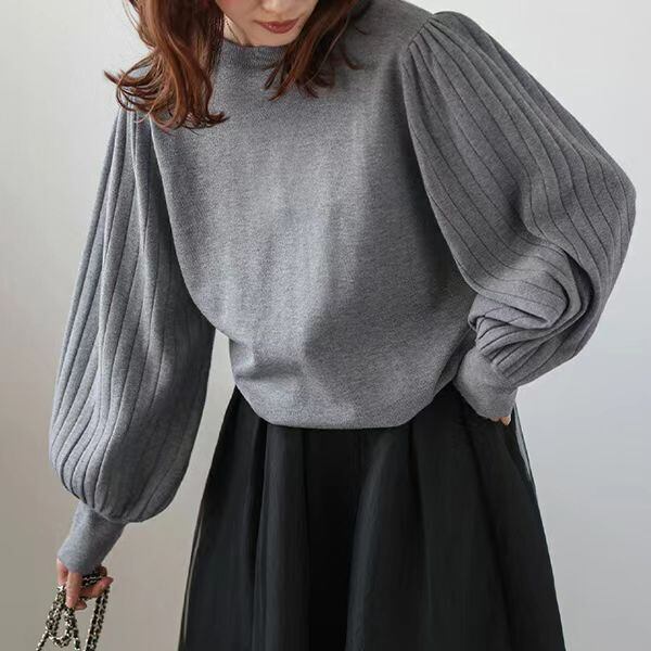 ニットトップス レディース ラウンドネック トップス ビッグシルエット ランタンスリープ 大人 可愛い