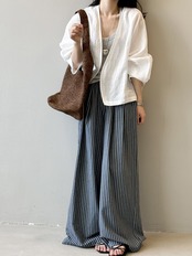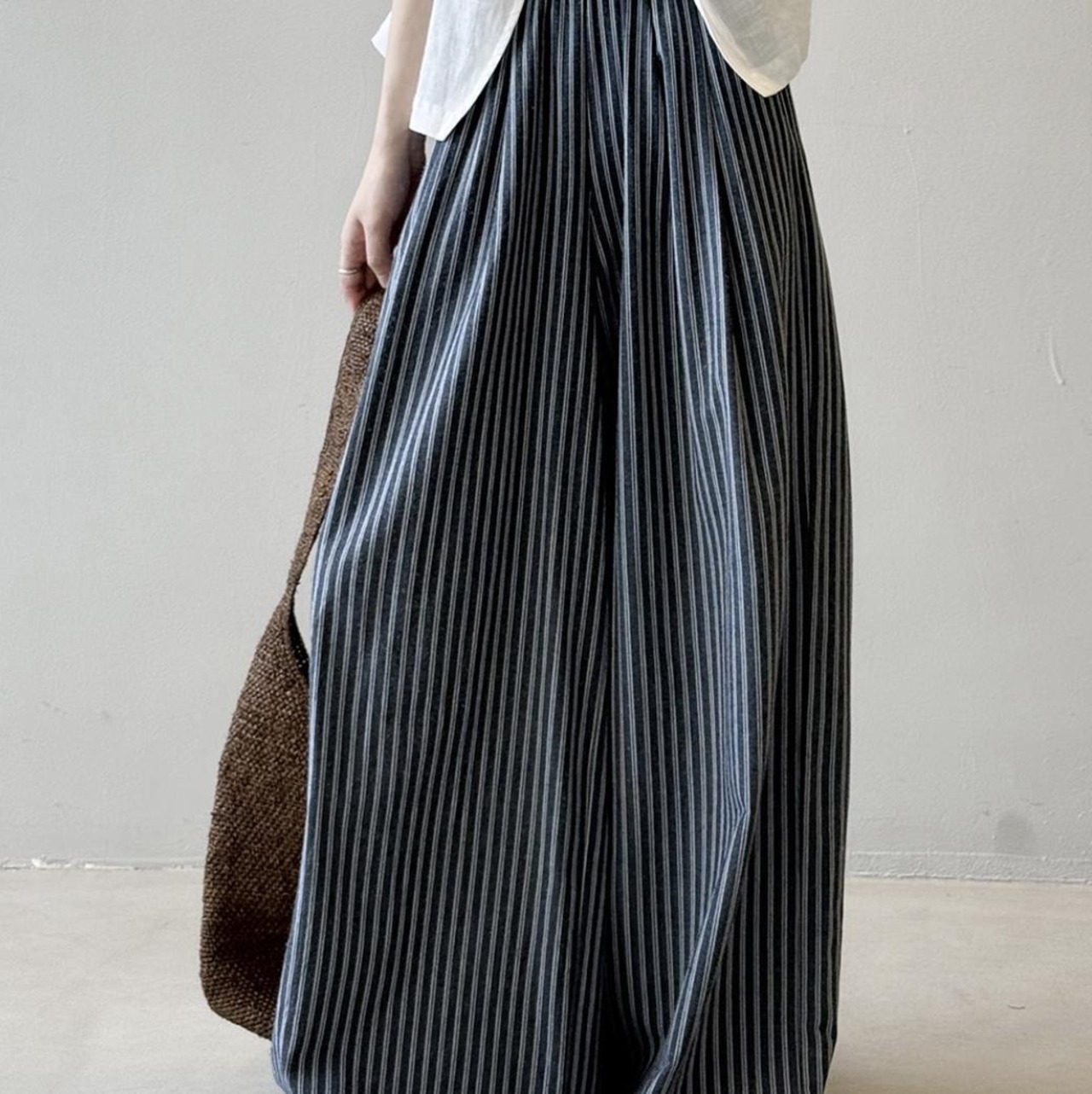 レディース ボトムス ロングパンツ ハイウエスト ワイド ボーダー