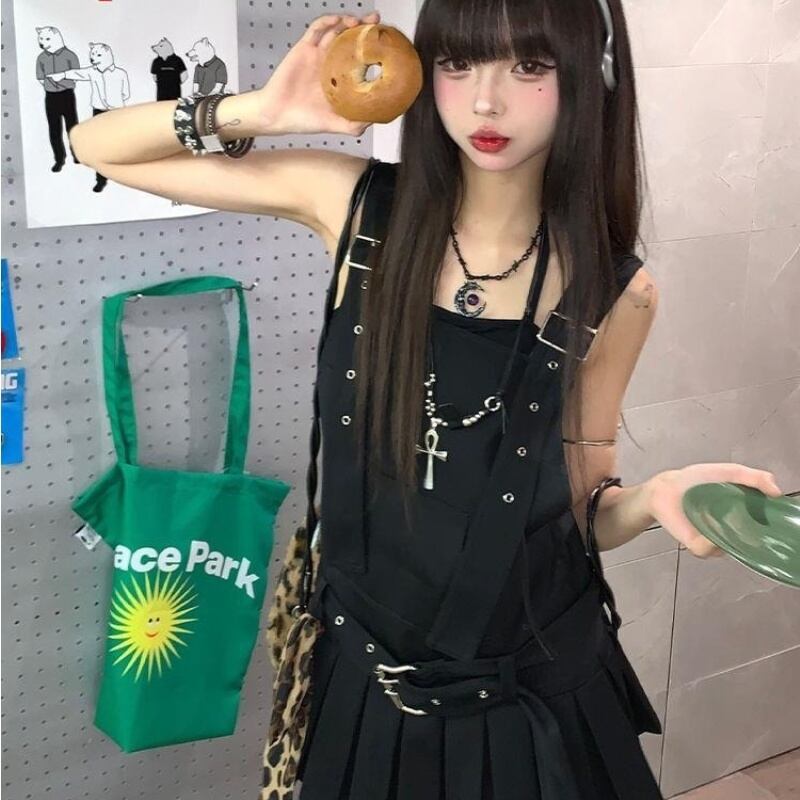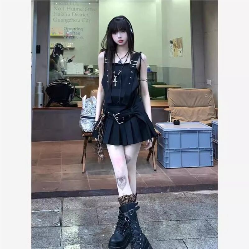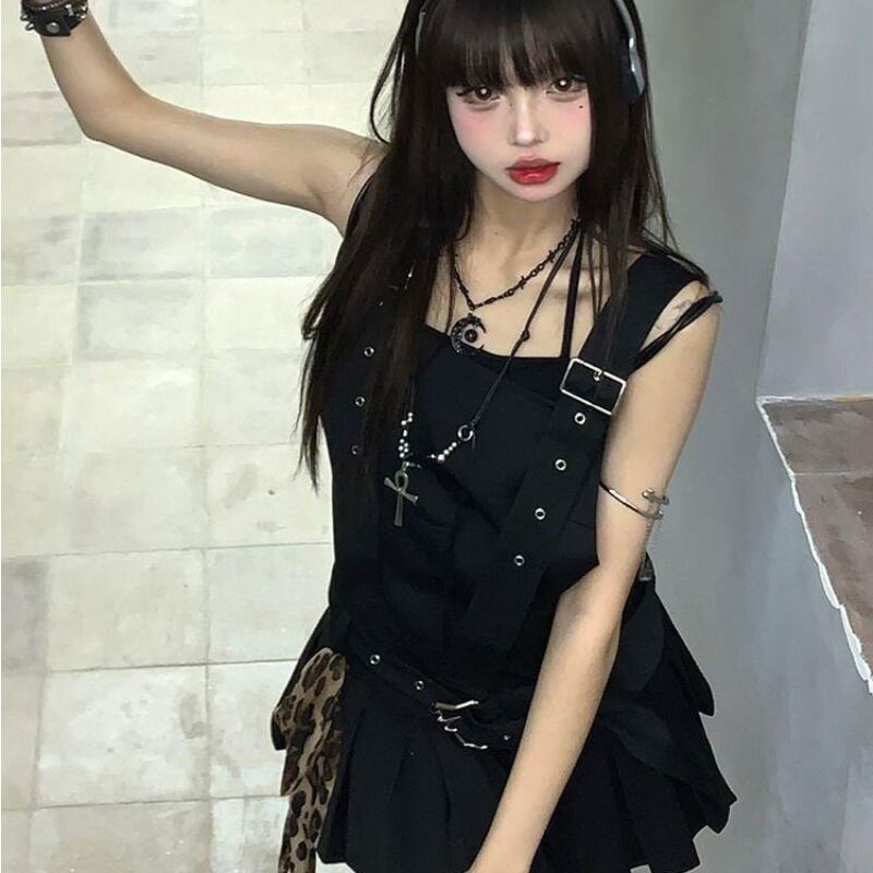 トップス ワンピース キャミソール ミニスカート プリーツ ストラップベルト