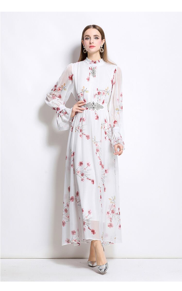 オシャレピーズ付きプリントワンピースレディース