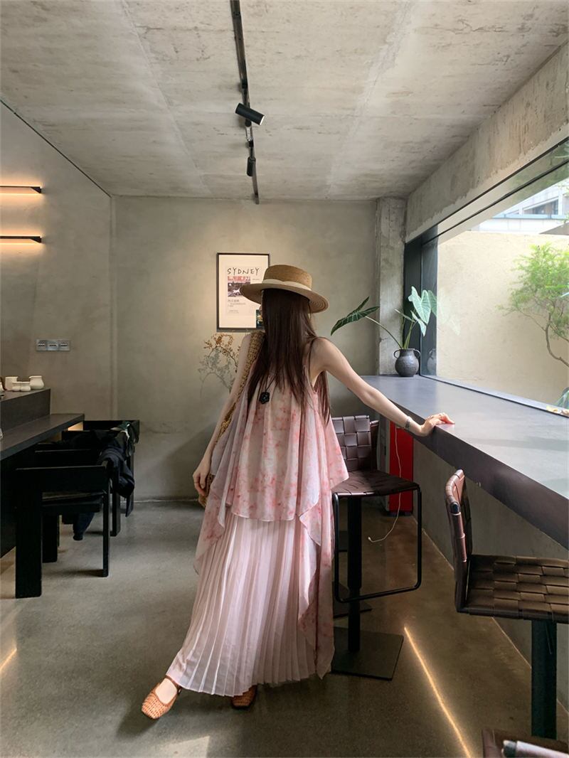 おしゃれ chic 韓国ファッション 偽2枚 ノースリーブ ワンピース