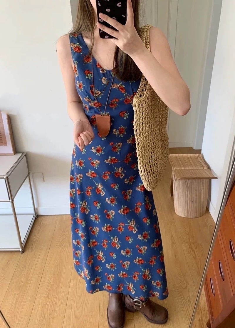 女 レディース 袖なし プリント ロング ワンピース 台型スカート