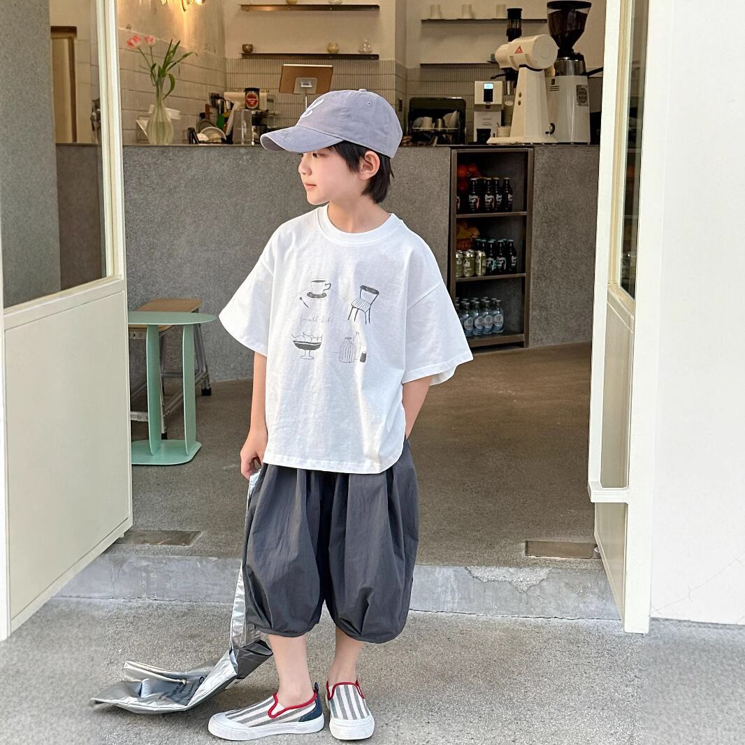 子供服 90~150cm キッズTシャツ カフェロゴT 半袖 男女兼用 韓国キッズ服