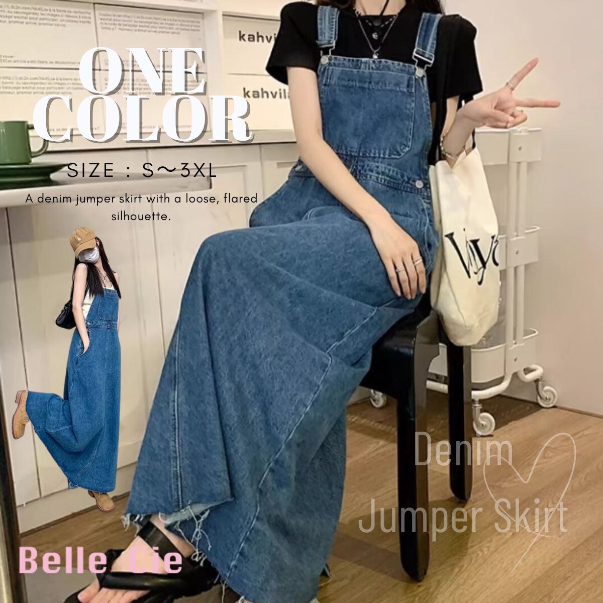 ジャンスカ サロペット スカート デニムスカート ロング フレア レディース 韓国ファッション シン