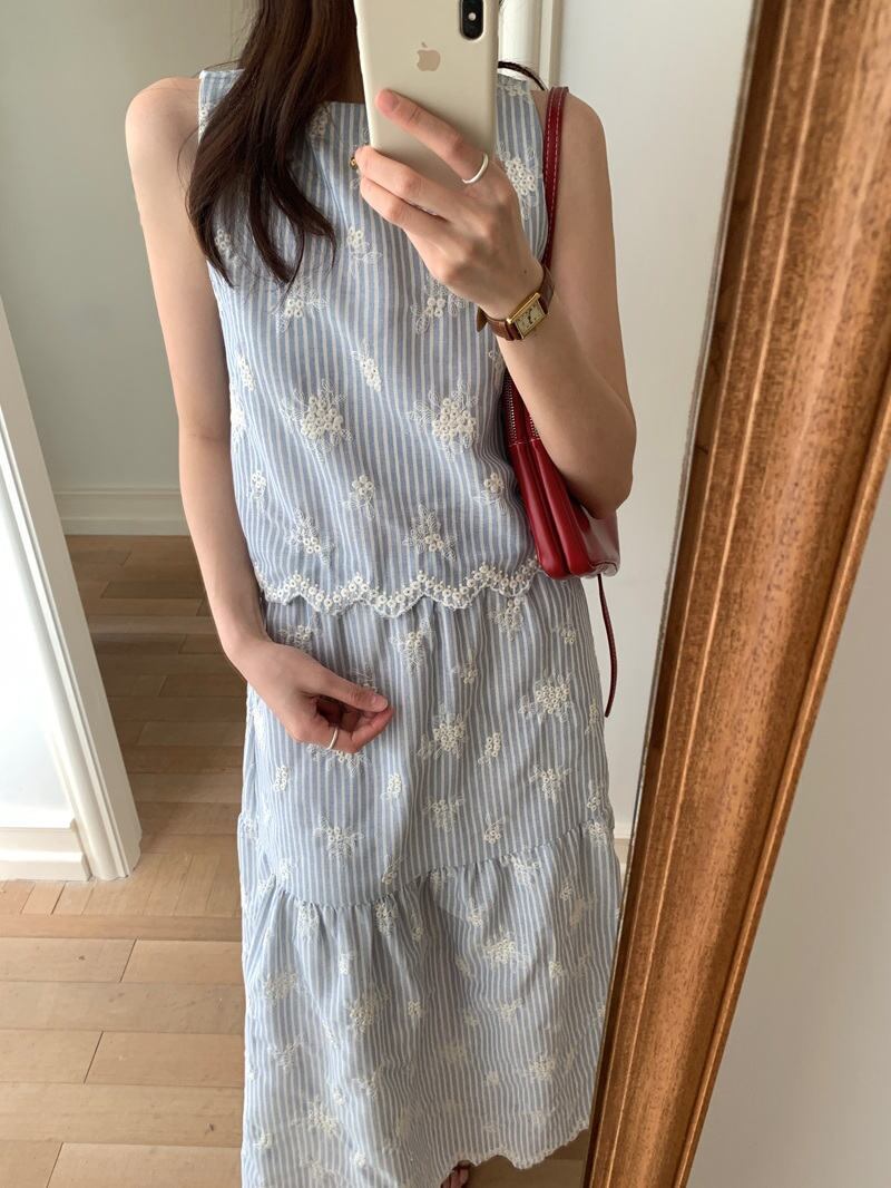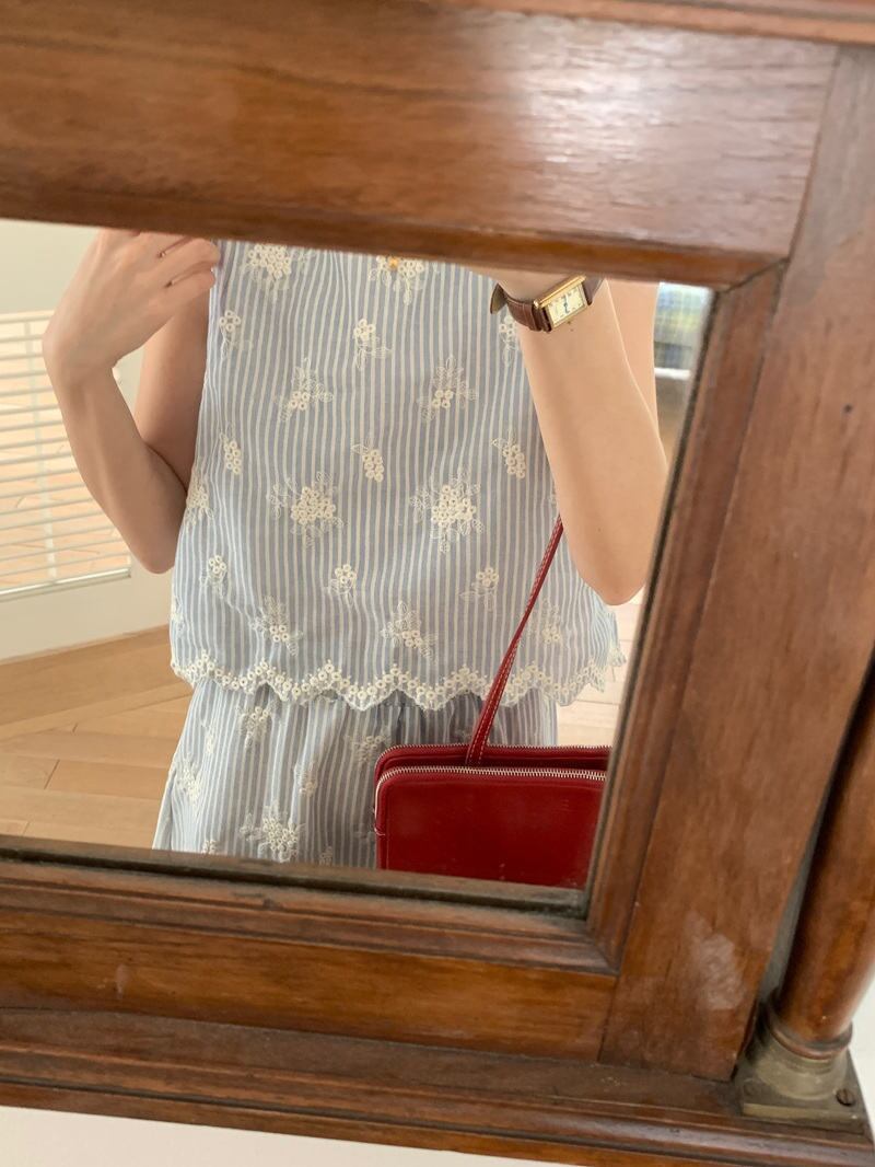 おしゃれ chic 韓国ファッション 刺繍 2点セットアップ