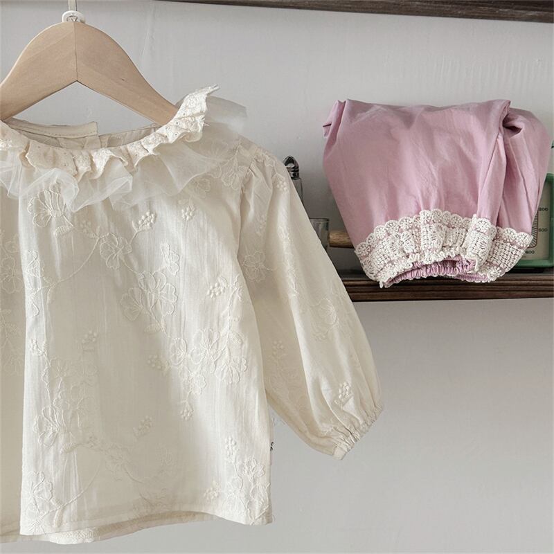 子供服 女の子 刺繍 花柄 長袖 ブラウス トップス 可愛い シャツ おしゃれ