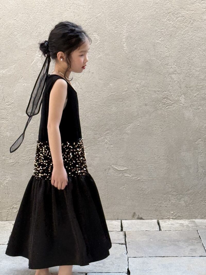 韓国風子供服 ガール シフトドレス ワンピース キラキラ ノースリーブ