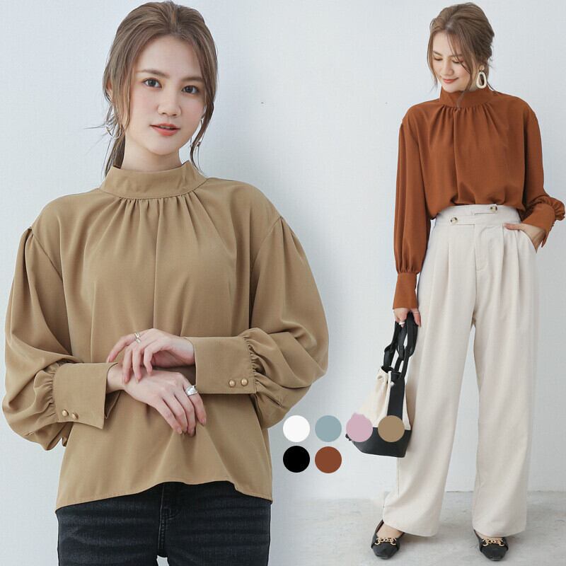 レディーストップス シャツ ブラウス 長袖シャツ 華やか 上品 ギャザー ハブスリープ オフィス