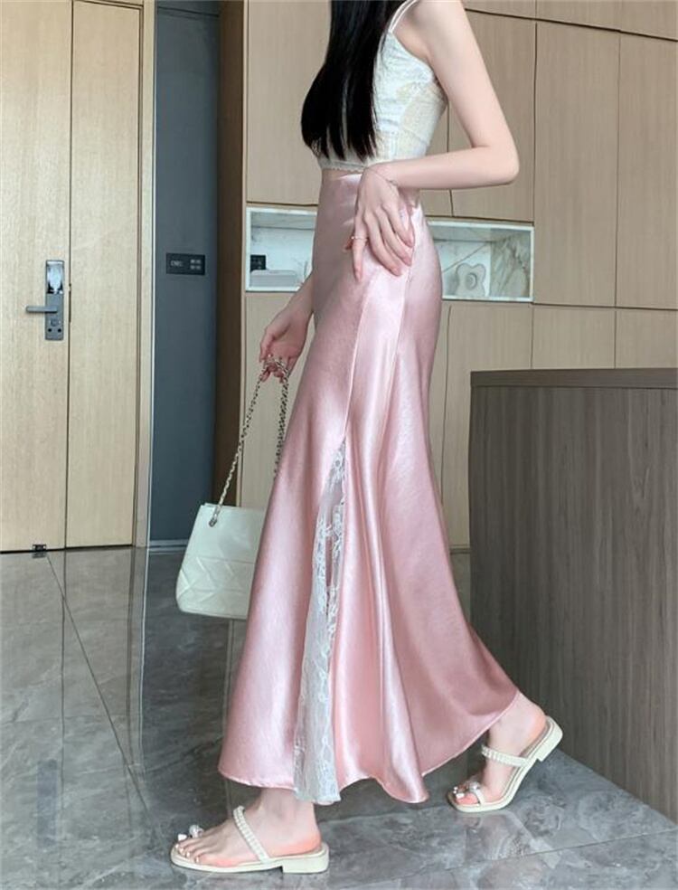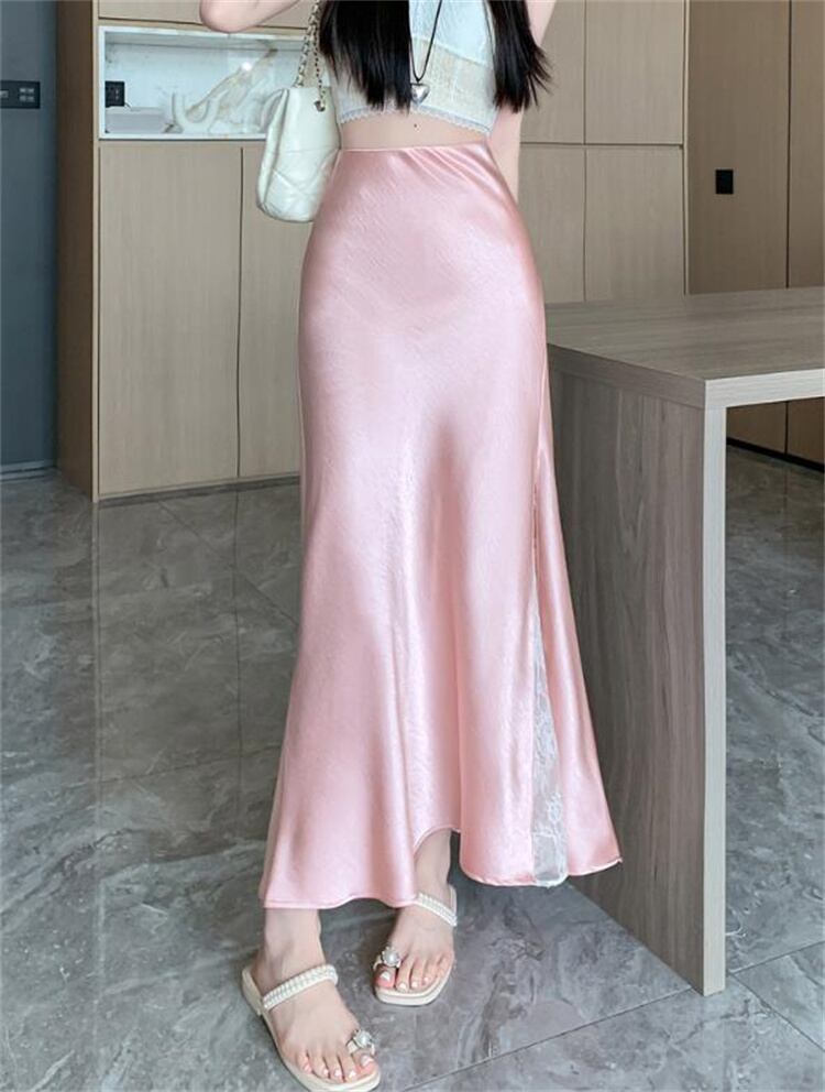 和モダン中華テイスト レース×サテンの艶やかハイウエストロングスカート