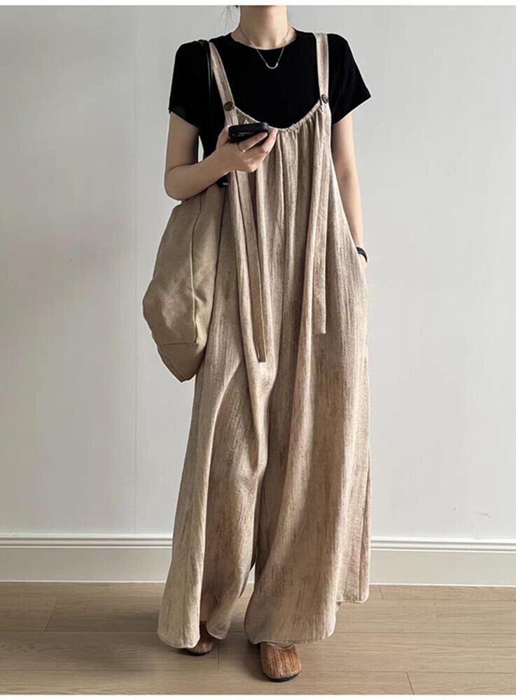 サロペットパンツ オールインワン ワイドパンツ オーバーオール レディース 体型カバー