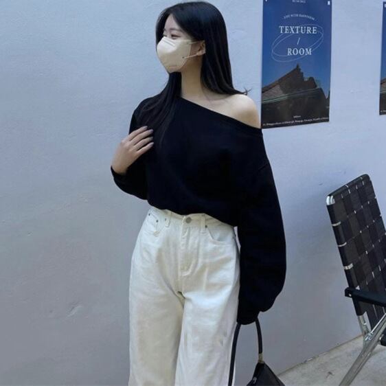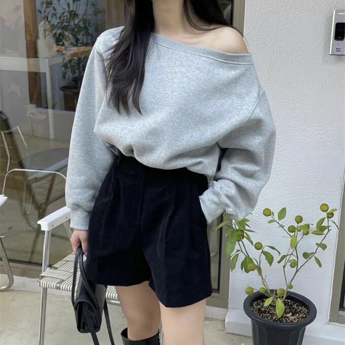 プルオーバー トレーナー レディース 長袖 トップス 春 スウェット オフショルダー カジュアル 可愛い