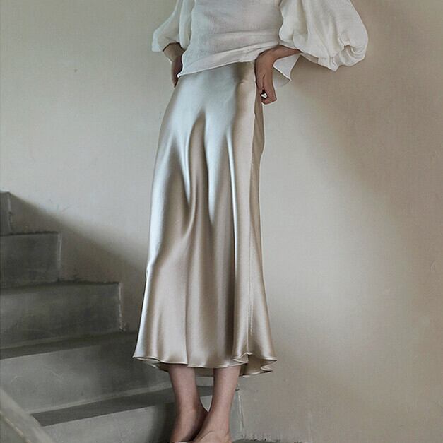 スカート ロング丈 春夏 光沢感 フレアスカート ボトムス レディース Aライン かわいい