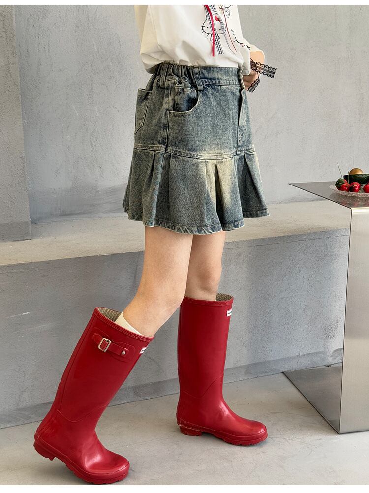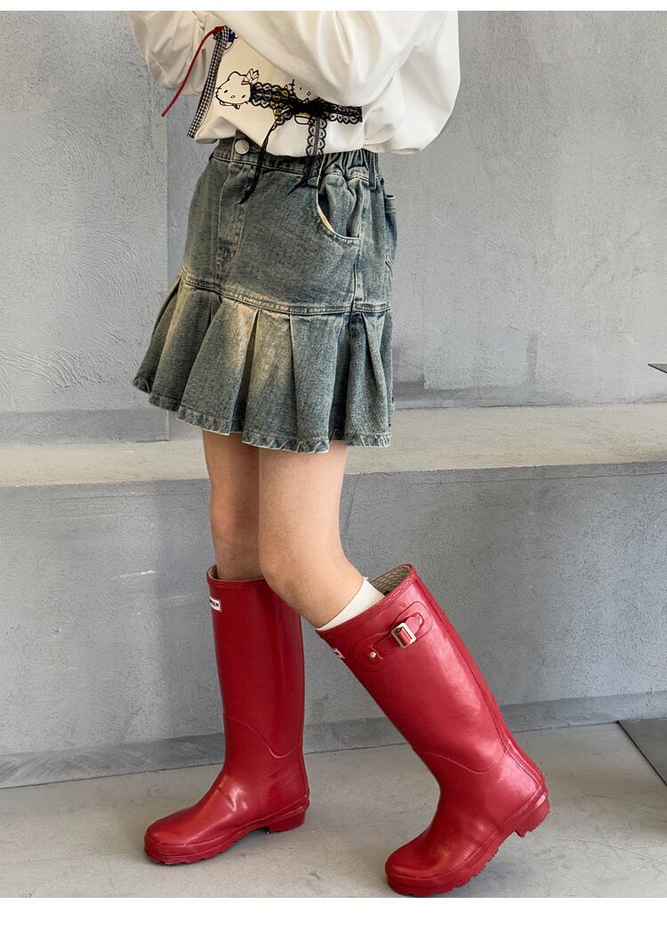 韓国風子供服 ボトムス ハイウエスト デニム ミニスカート 台型スカート 子ども服