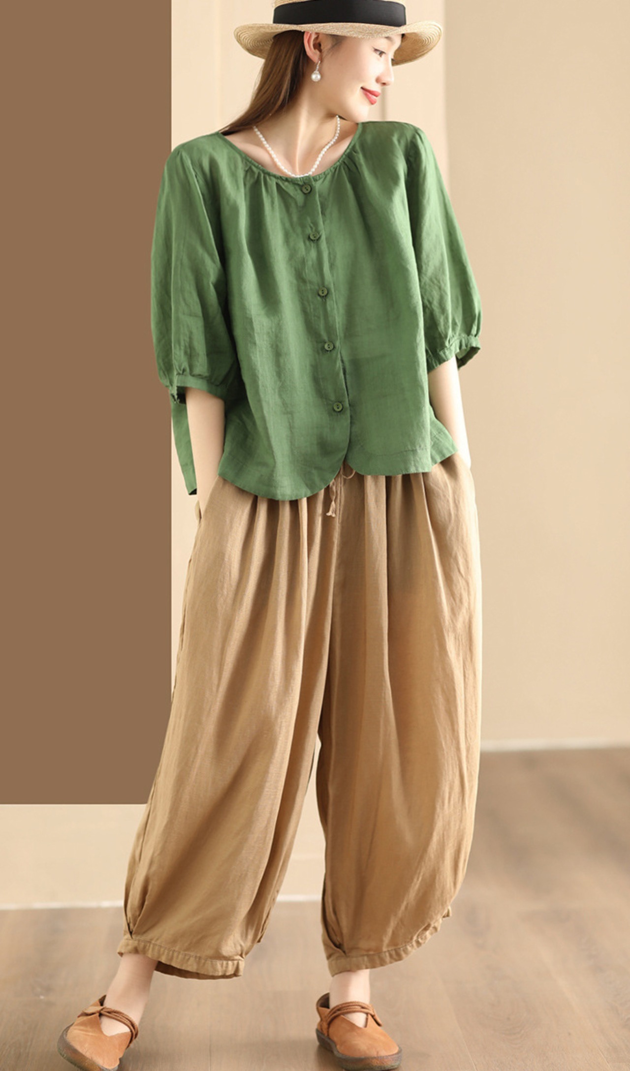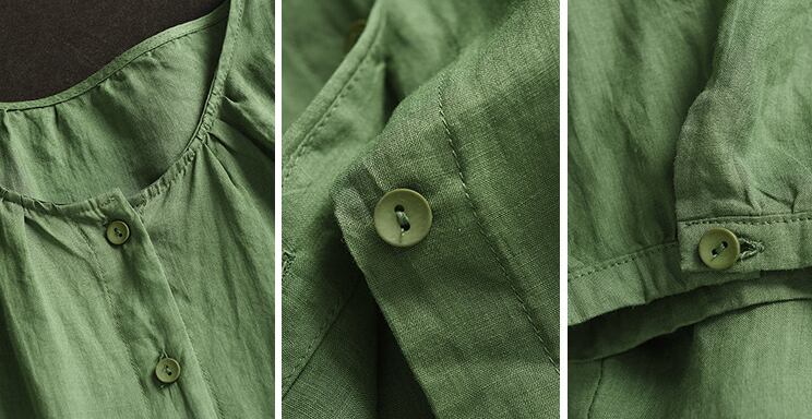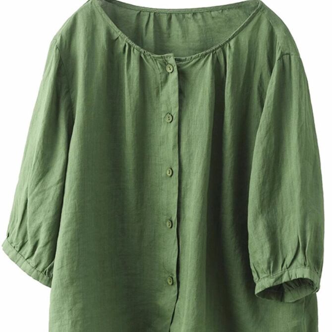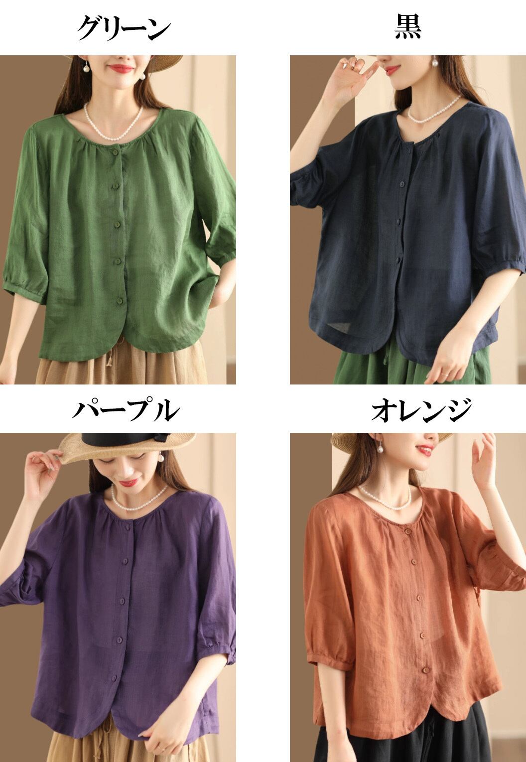 シャツ レディース ブラウス トップス 綿 麻 ボタン おしゃれ リネンシャツ 七分袖