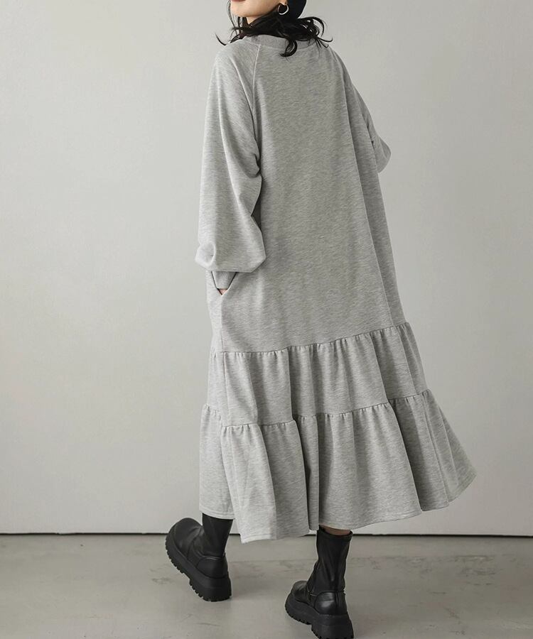 ワンピース ロング丈 レディース ビッグシルエット 長袖ワンピース 着回しやすい