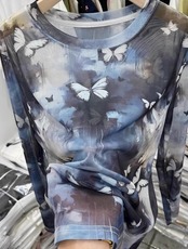 トップス カットソー ロンT Tシャツ プリント スリム 細身 タイト レディース