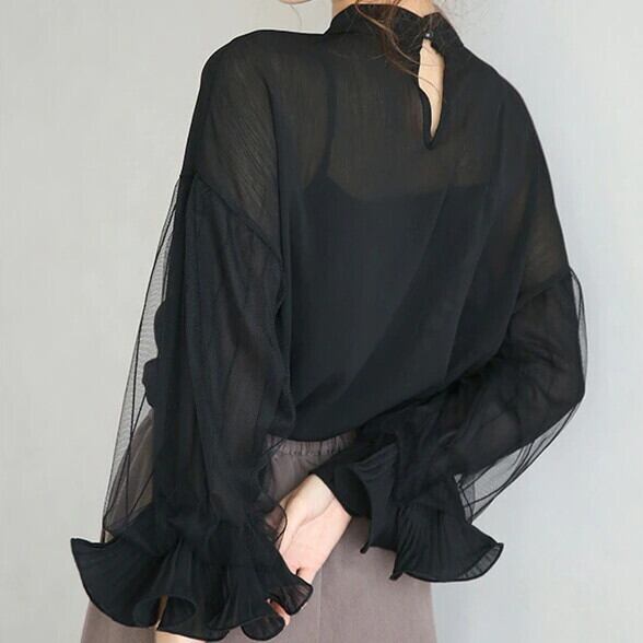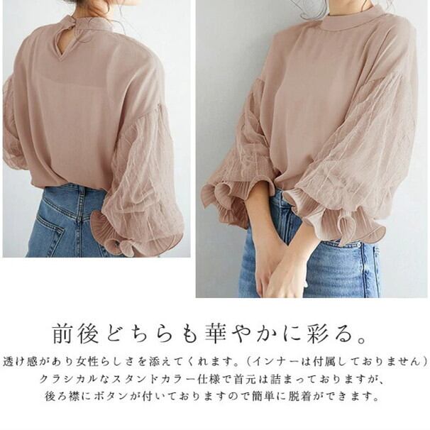 シフォンシャツ トップス レディース ランタンスリープ きれいめ 可愛い