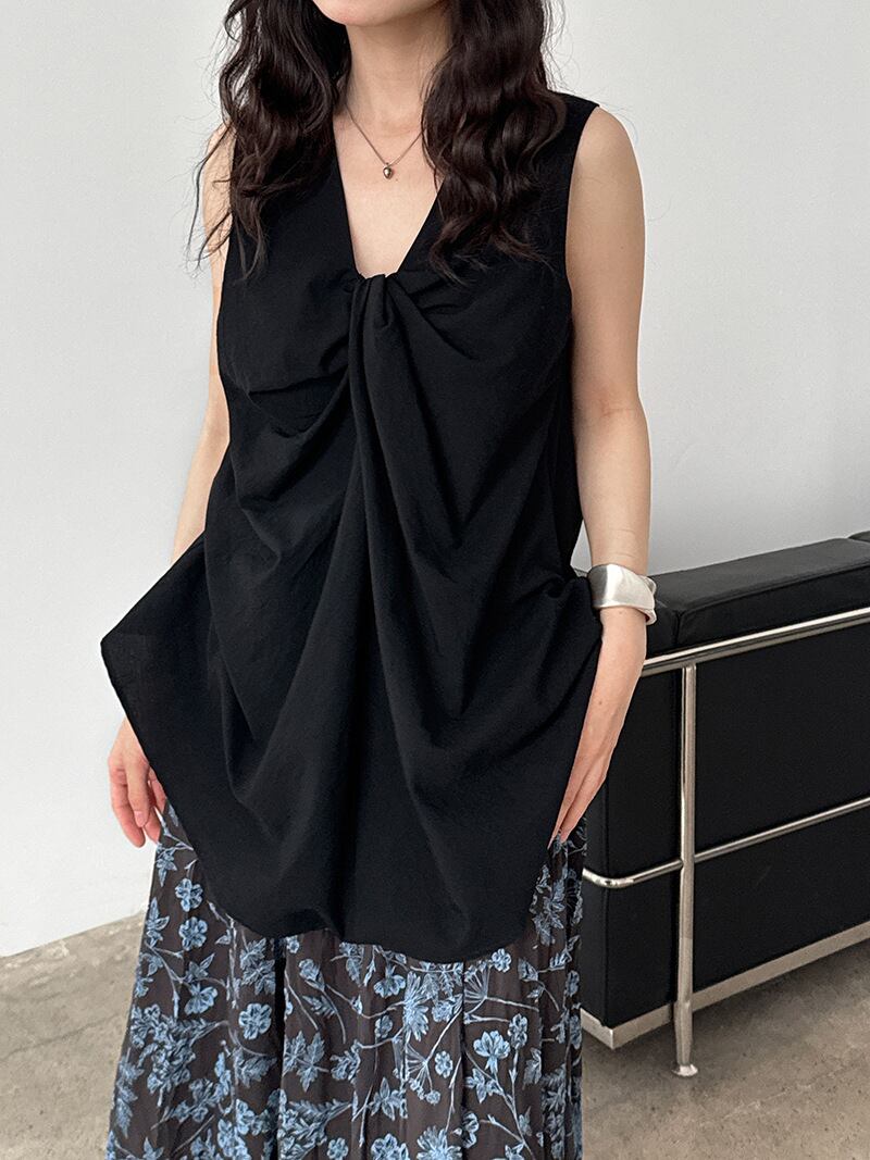 トップス レディース シャツ ベスト 2色 無地 ノースリーブ フレンチ