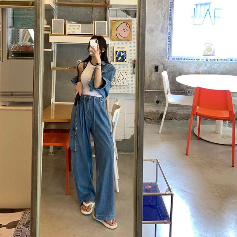 韓国風 気質 人気 カジュアル おしゃれ ロング デニムパンツ