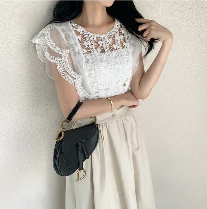 可愛い レース飾り おしゃれ 韓国ファクション トップス ブラウス