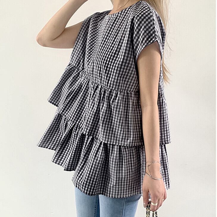 ブラウス シャツ 半袖シャツ レディース トップス ビッグシルエットラウンドネック Sweet