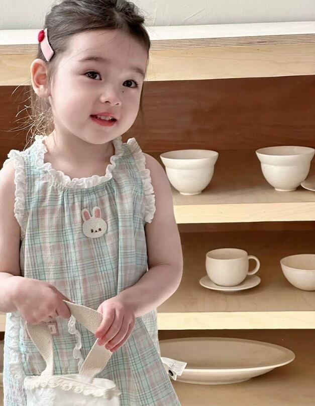 韓国INS風 子供服 無袖 トップス チェック柄 ワンピース