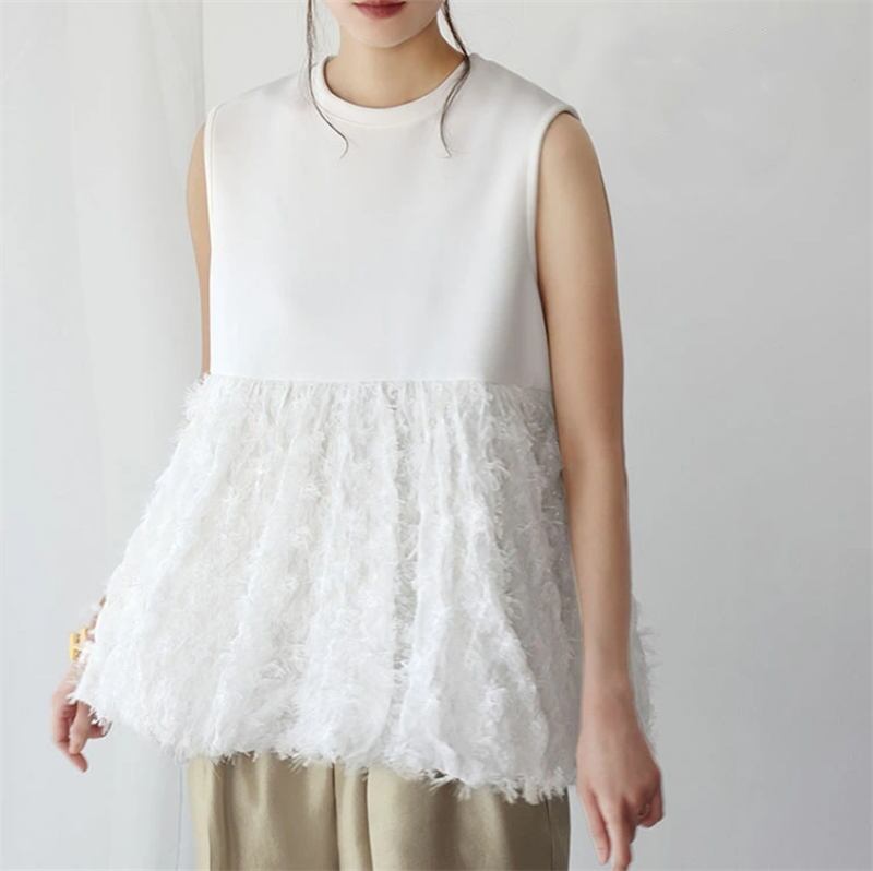 おしゃれ パフスリーブ カジュアル系 トップス ノースリーブ Tシャツ