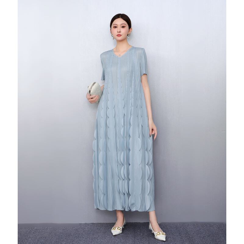 レディースファッション エレガント オシャレ プリーツ半袖ワンピース