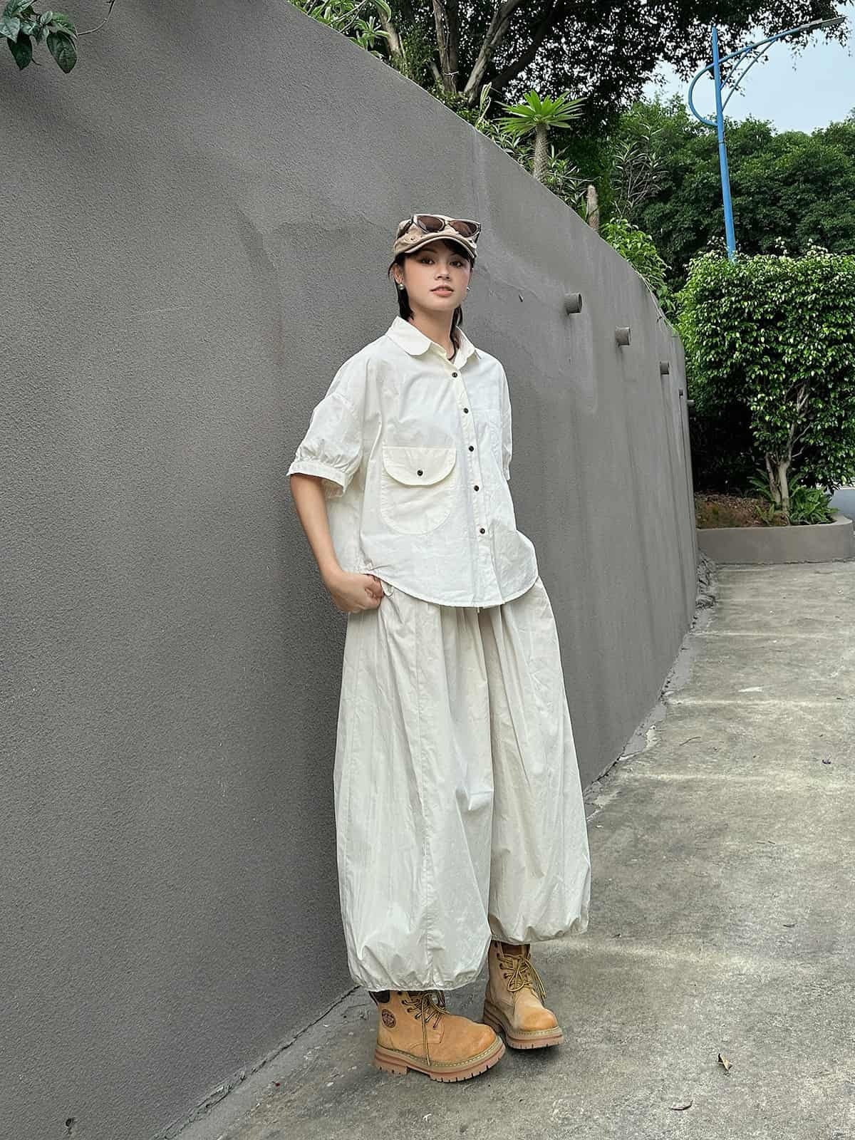 お腹周りをカバーしてくれるゆとりのあるシルエット。