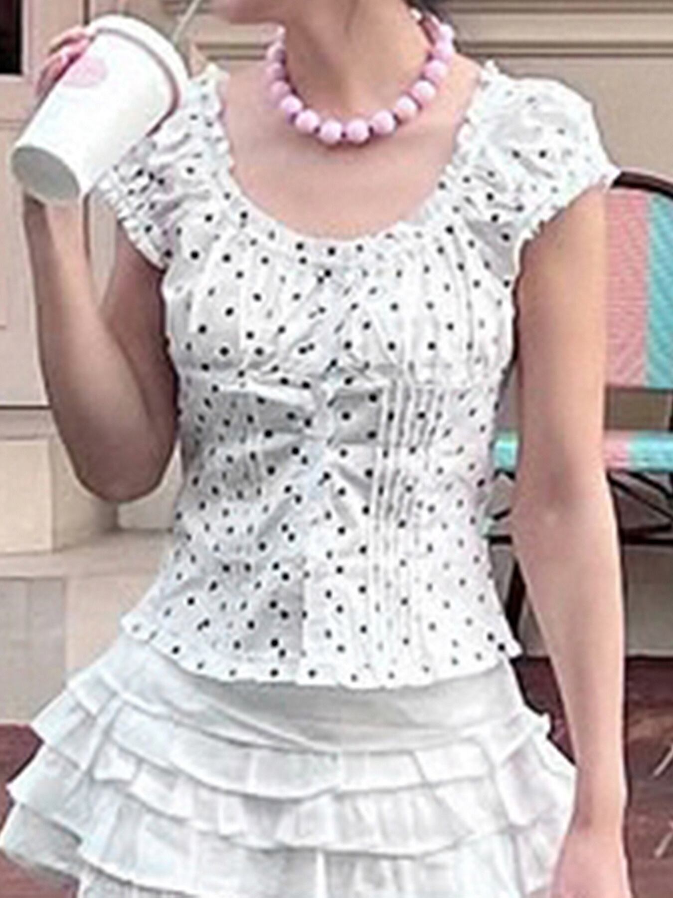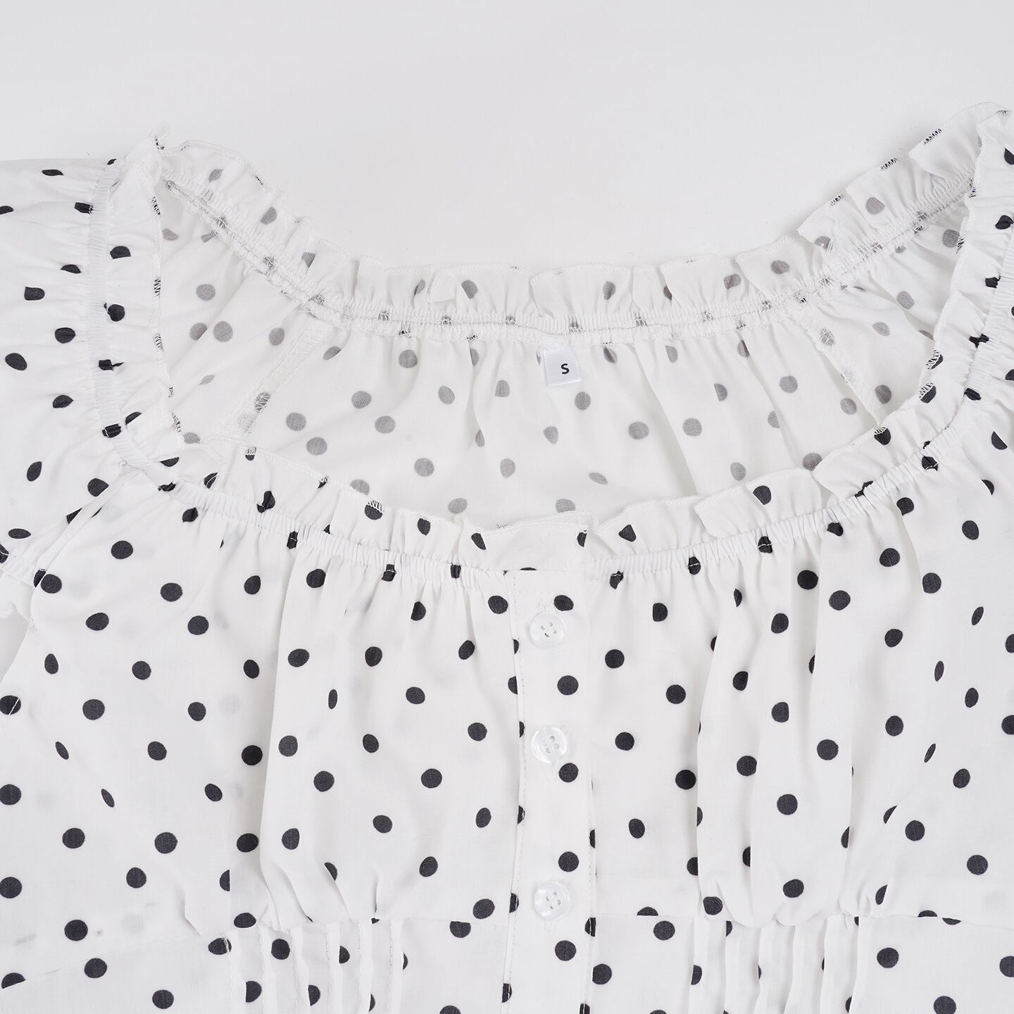 トップス 女 レディース 半袖 ドット シャツ ブラウス コート アウター