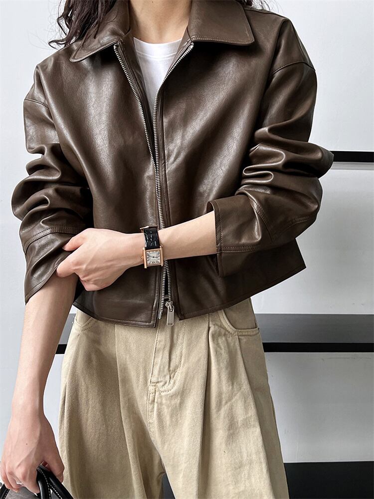 ショート丈 レザージャケット トレンド ノッチカラー