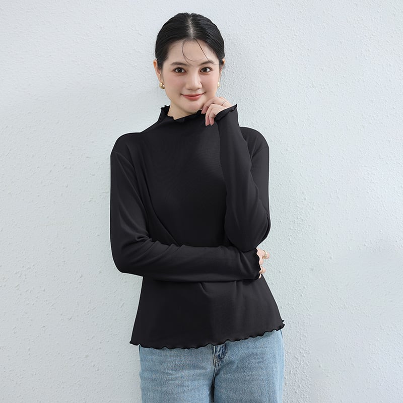 インナー 無地 セミハイネック 着痩せ ベースレイヤートップ フリルエッジデザイン