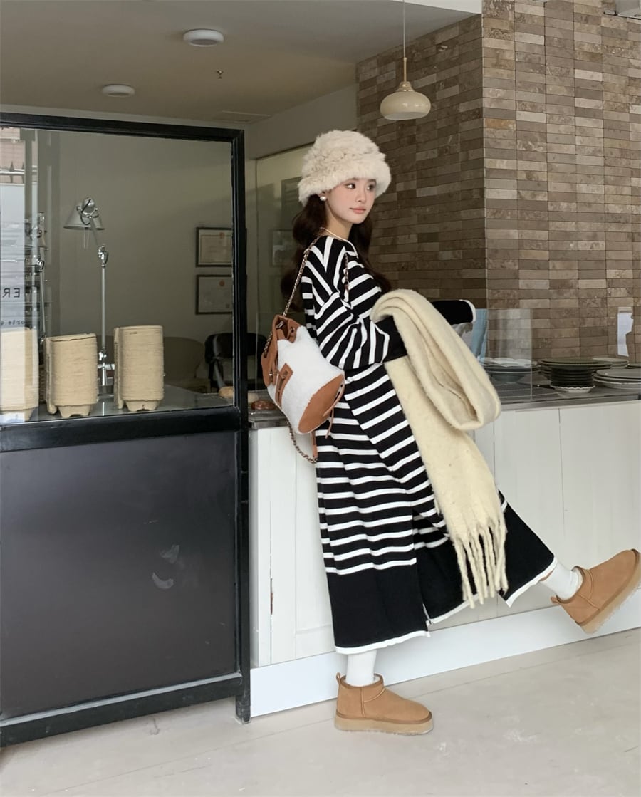 おしゃれ 気質 ルーズ ストライプ スリム ワンピース