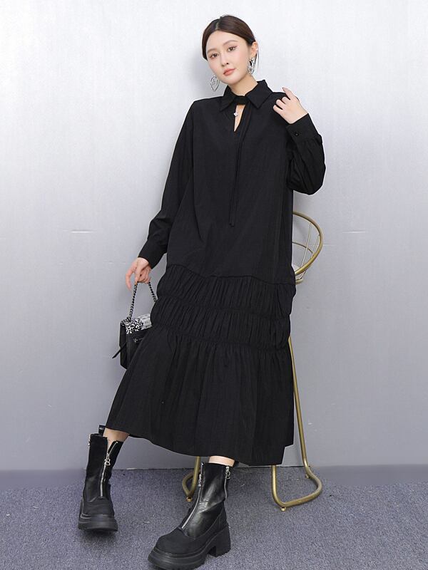 レデイースファッション人気シャツ風ワンピース オシャレ カジュアルロングワンピース