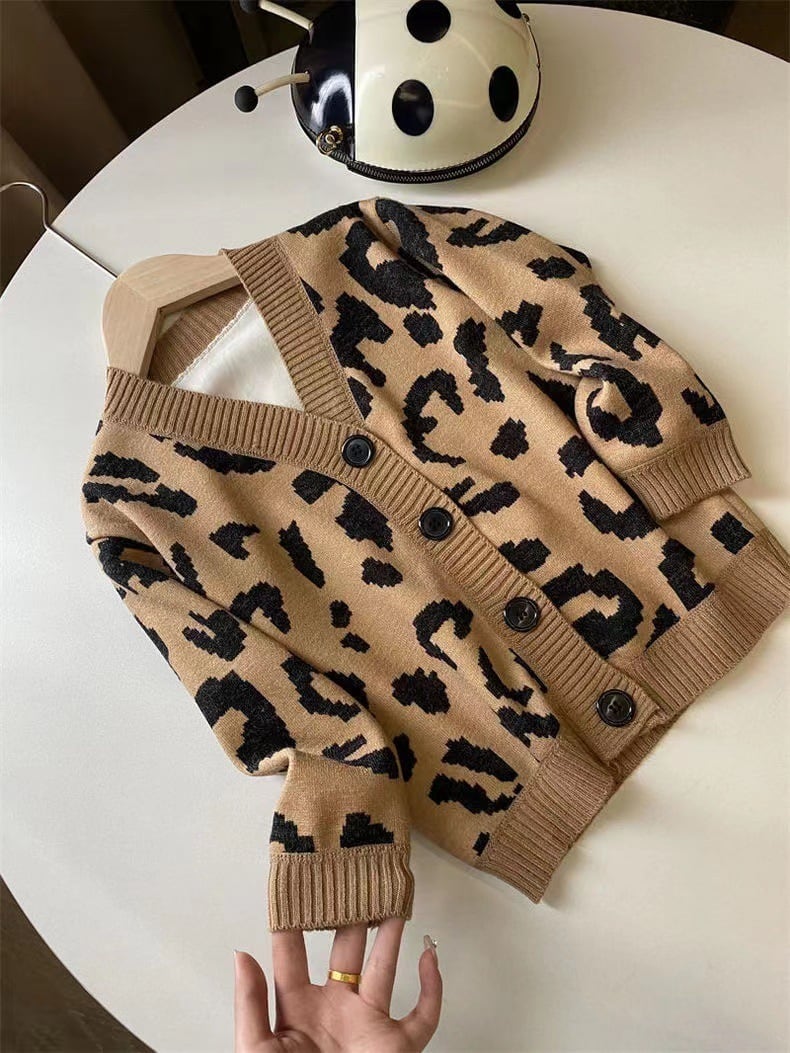韓国風子供服 キッズ 男女兼用 トップス ヒョウ柄 ニットカーディガン 90cm-150cm