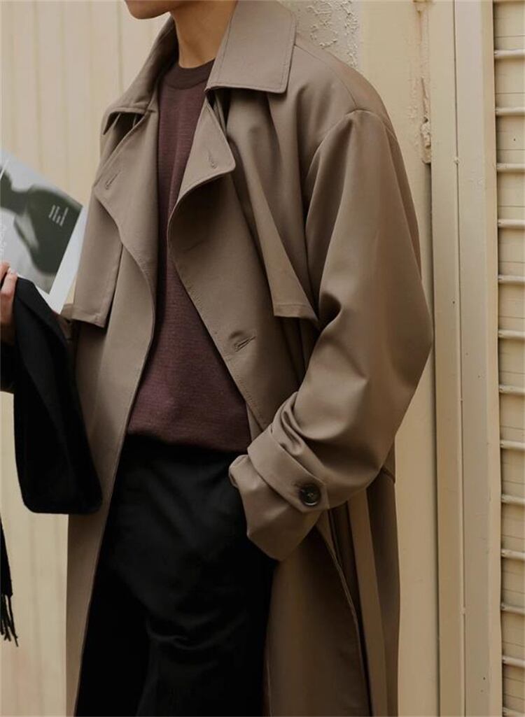 ダブルボタン メンズ ダスターコート ゆったりする コート ロングセクション